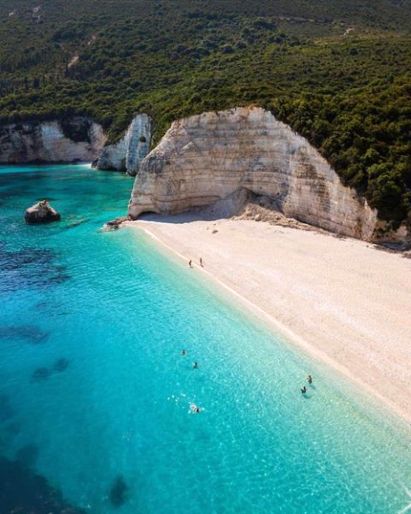 “Majestuosos acantilados blancos enmarcan la playa, curvándose alrededor de un tramo de llamativos guijarros blancos mezclados con arena, que se unen a las cristalinas aguas turquesas del mar Jónico“, reza la descripción. “La belleza intacta y el entorno tranquilo de la playa de Fteri la convierten en un paraíso para quienes buscan paz y una profunda conexión con la naturaleza”.
