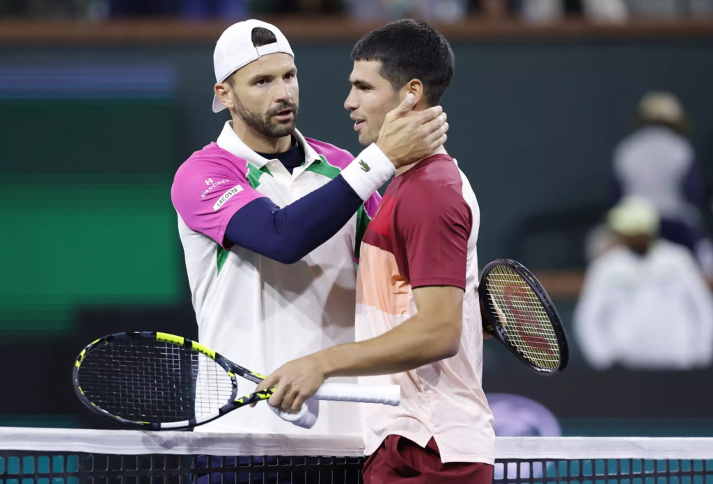 Carlos Alcaraz saluda a Grigor Dimitrov. / EFE