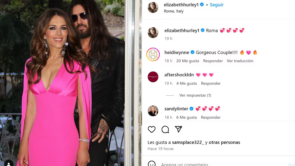 La pareja se mostró por primera vez en público en Roma durante la inauguración de una exposición en el Palazzo Barberini (Instagram/@elizabethhurley1)
