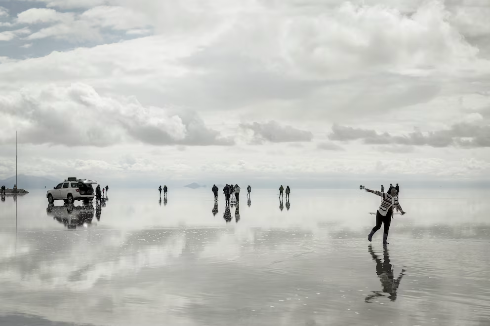 A una altura de 3656 metros sobre el nivel del mar, cerca de la cresta de la Cordillera de los Andes, muchas personas del todo el mundo viaja para conseguir “el efecto espejo” y sacar un tipo de fotografía en especial, aprovechando el reflejo de la sal.
