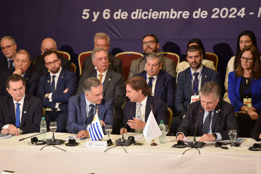 Yamandú Orsi, Luis Lacalle Pou y Omar Paganini, en la última cumbre del Mercosur en Montevideo (REUTERS/Martin Varela Umpierrez)