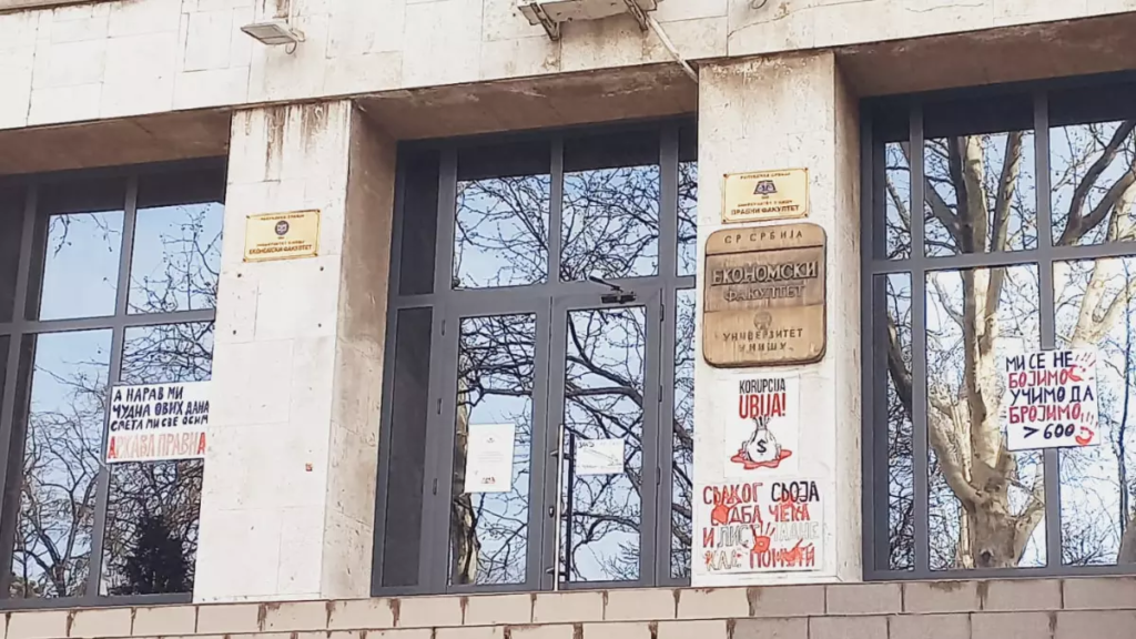 La Facultad de Economía de Nis lleva días cerrada a cal y canto / SPORT.ES