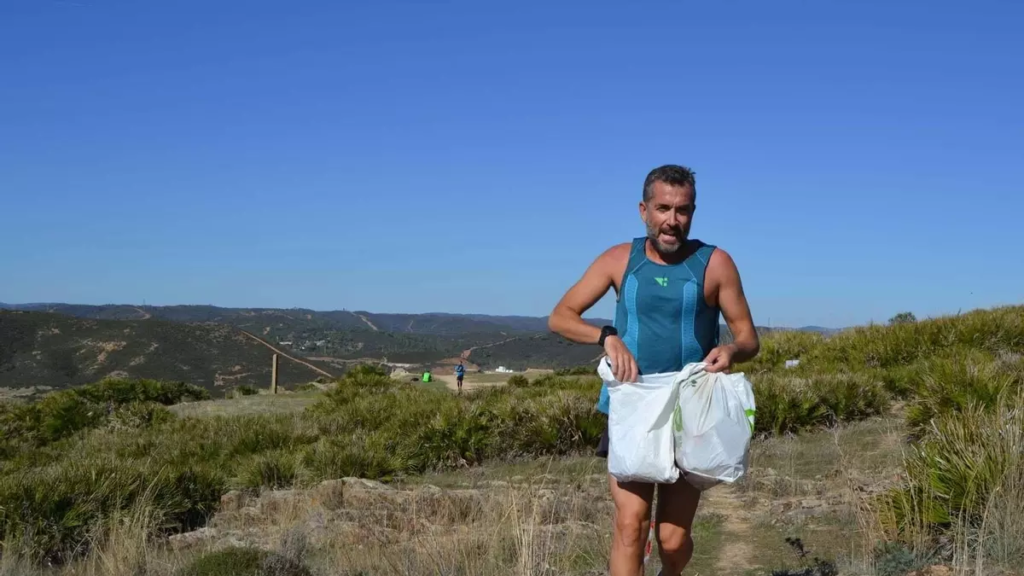 “Quique Bolsitas” recogiendo basura mientras corre / ABRACEMOS EL MAR