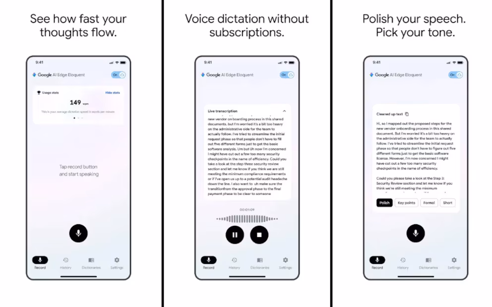 That is where the competitive significance begins. The app reportedly cleans up dictation by removing filler words, smoothing self-corrections and turning raw speech into more polished text. This means the product is not merely transcribing language. It is interpreting intent. In other words, Google is no longer offering basic speech recognition alone. It is packaging a lightweight editorial layer into mobile dictation, allowing spoken thought to arrive on screen in a more publishable form. That pushes the tool from utility toward authorship assistance.