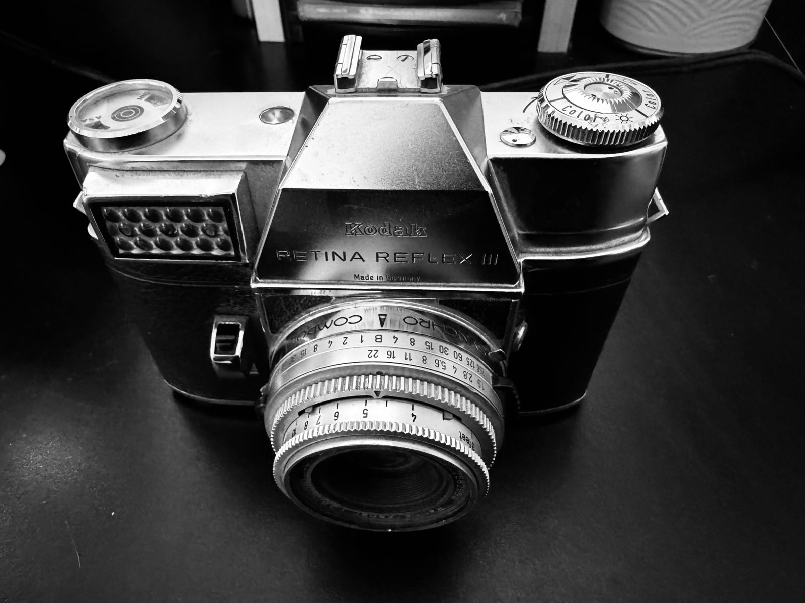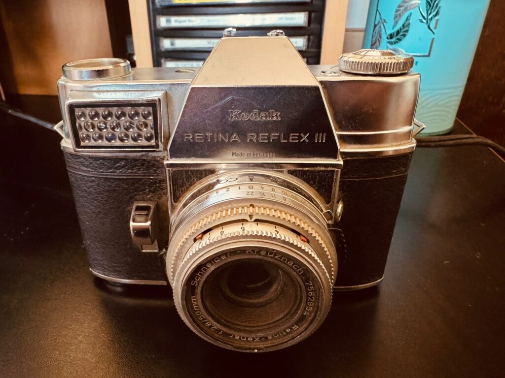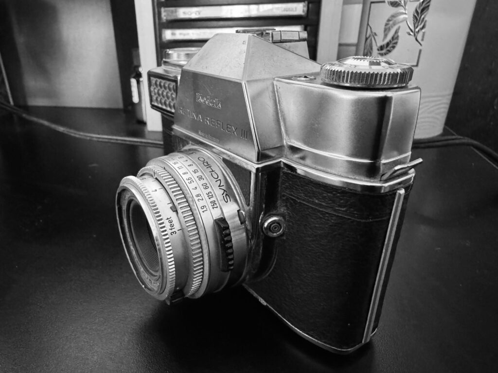 Made in Germany, this Kodak Retina Reflex III does not look like a camera. It feels like a presence. One of those things that has seen too much and, even so, continues to keep its silence, as if waiting for the precise moment to return a fragment of memory to the world. There is an old gravity in its metal, an almost human patience, as if it still carried the echo of newsrooms, the tremor of history, and the restrained breath of those who learned to look before they spoke.