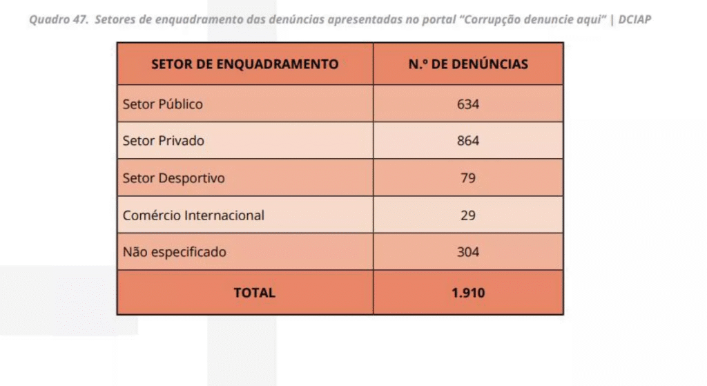 En cuanto al objeto o destinatario de la denuncia, en 2023, la gran mayoría (45,2%) pertenece al sector privado, seguido del sector público, con un 33,2%. Le sigue el sector del deporte, con un 7,2%, luego el comercio internacional y, por último, los sectores no especificados.