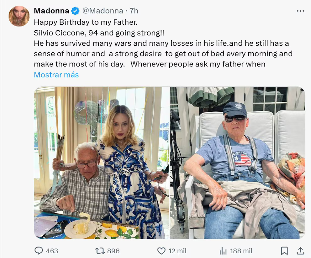 Madonna celebró el cumpleaños de su padre con un emotivo mensaje. (X/@Madonna)