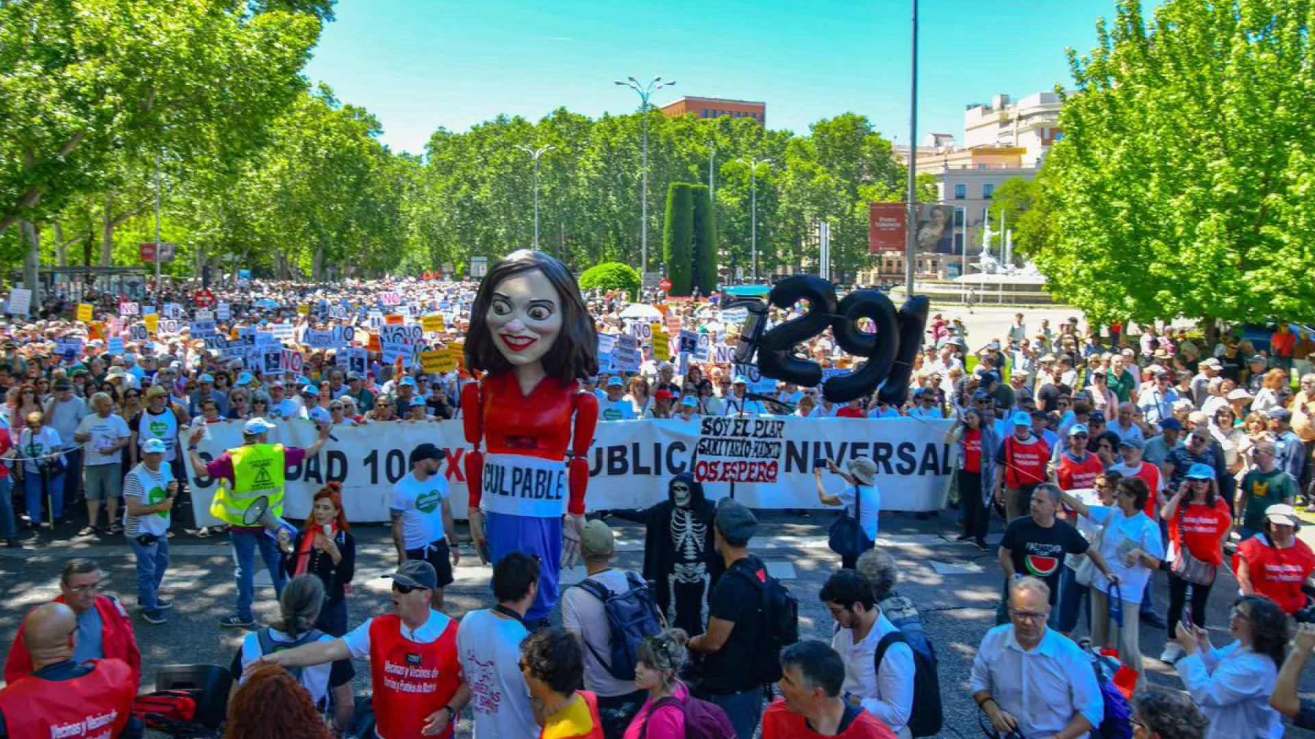 La manifestación, organizada bajo el lema ‘Salvemos nuestra Sanidad pública’, evidenció el creciente malestar ciudadano ante lo que consideran un proceso de privatización y desmantelamiento del sistema sanitario público madrileño.