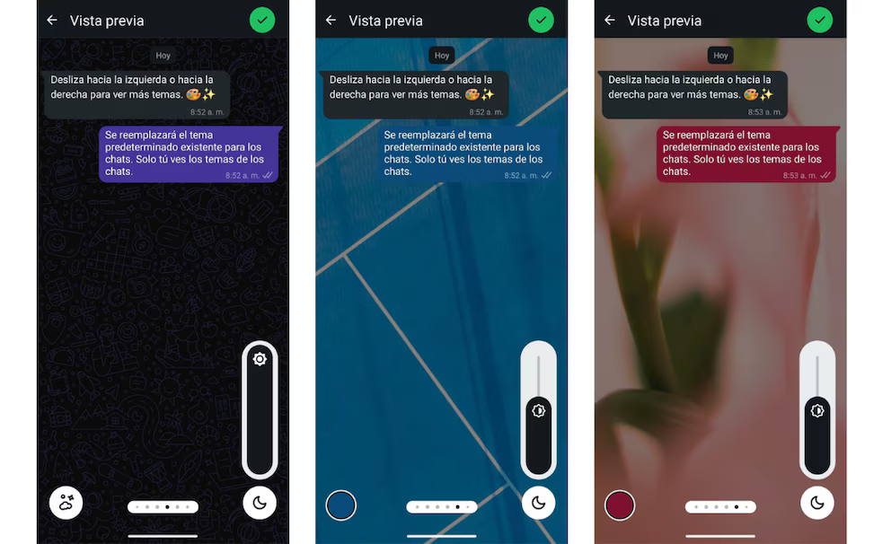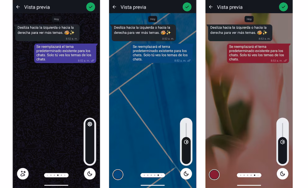 Se puede ajustar el brillo de los temas y colores seleccionados. (WhatsApp)