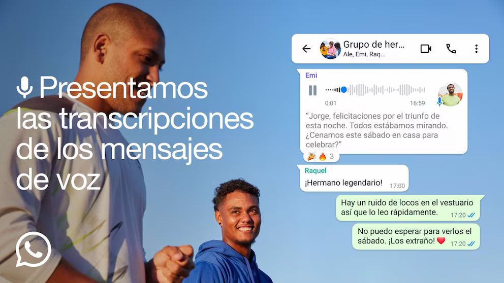 La transcripción de mensajes de voz incluye varios idiomas como el español y el portugués. (WhatsApp)